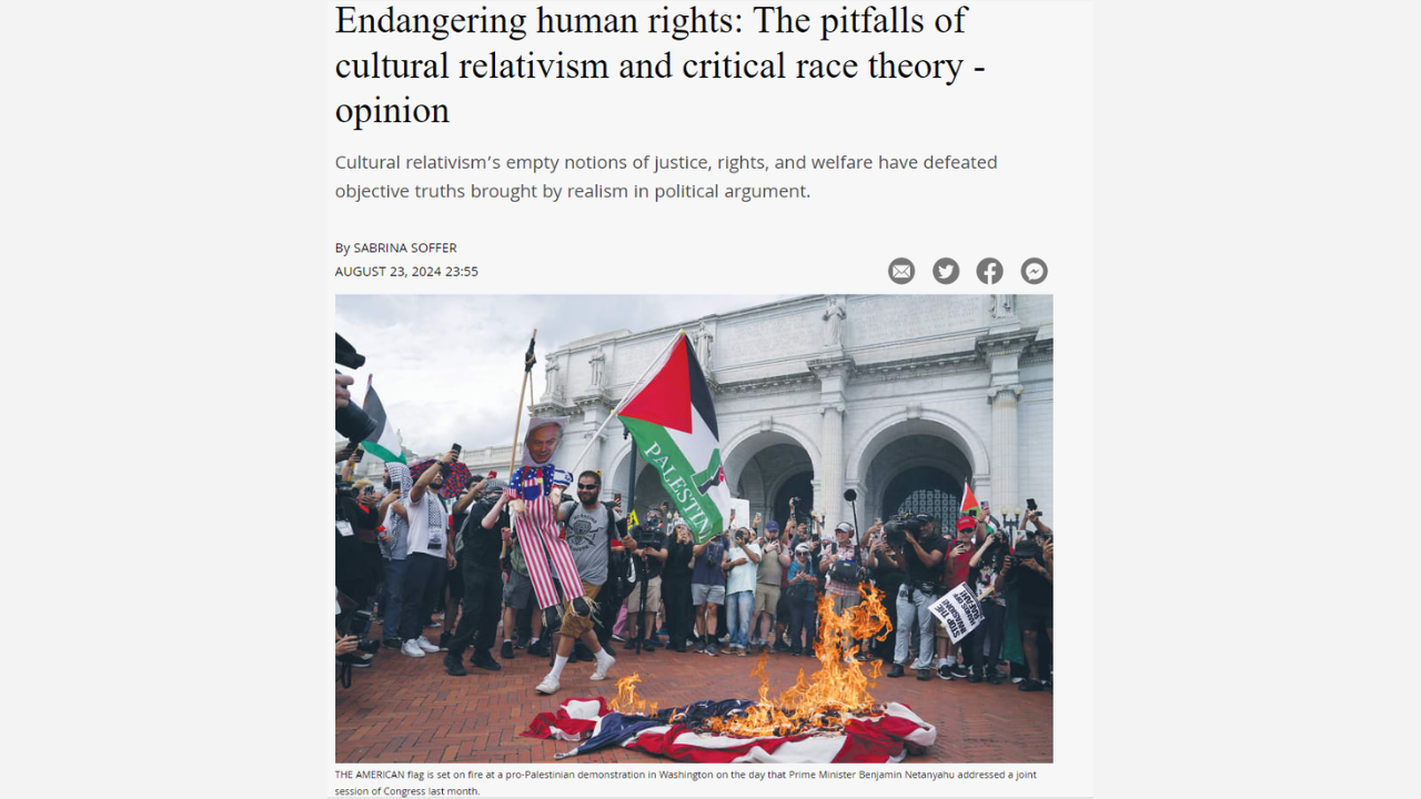 Sabrina Soffer, a member of the Jewish Diplomatic Corps Academy, publishes an Op-Ed in the Jerusalem Post about the Free Palestine movements' "empty notions of justice, rights, and welfare" that cloud any room for objective truth.