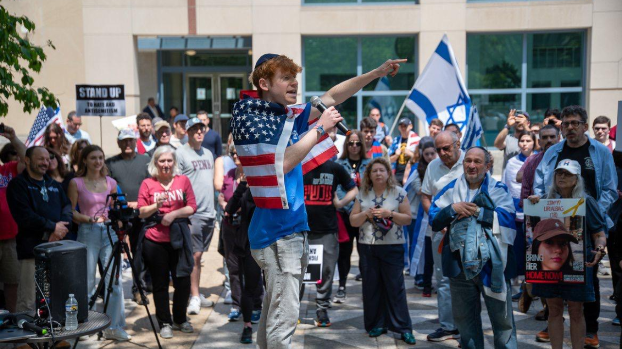 Lauder Fellow Noah Rubin spoke this week at a rally showing support for the Jewish and Israeli community following anti-Israel demonstrations and a rise in antisemitism at the University of Pennsylvania.