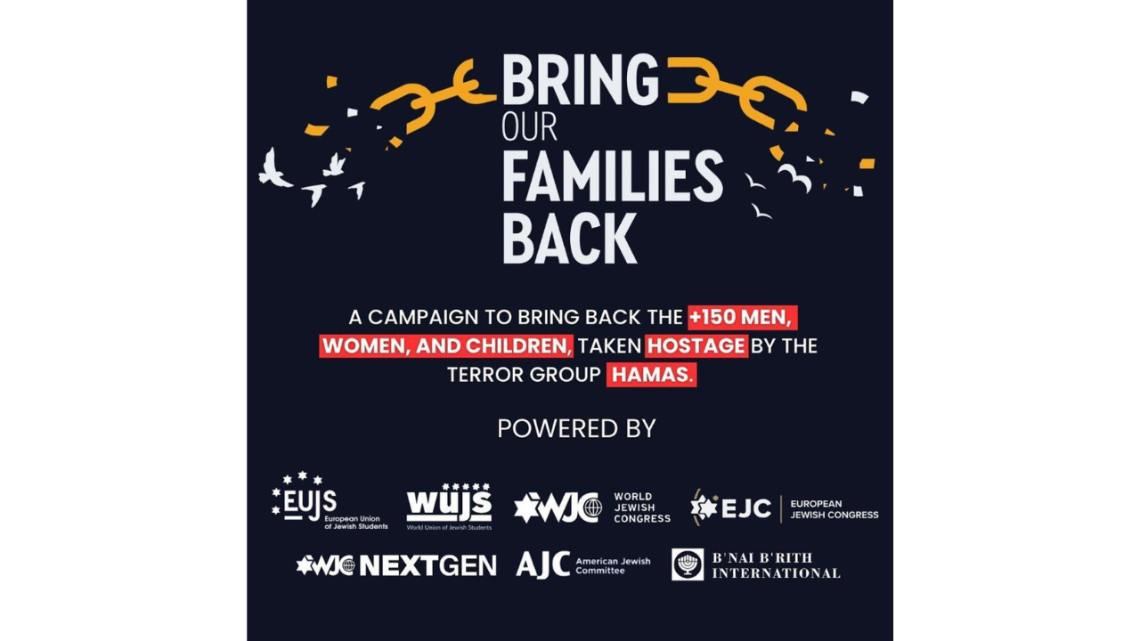 The European Union of Jewish Students launched their #BringOurFamiliesBack campaign to demand the return of over 150 hostages being held in Gaza by terrorists.