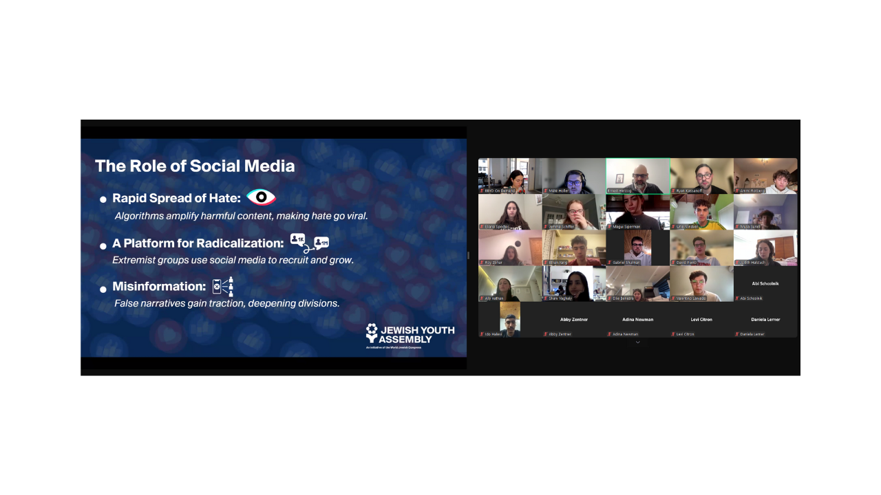During the third and final JYA virtual session before the in-person gathering in Denver on the sidelines of BBYOIC, JYA delegates heard from Ernest Herzog, WJC's Head of Combatting Antisemitism, Intelligence, and Security.