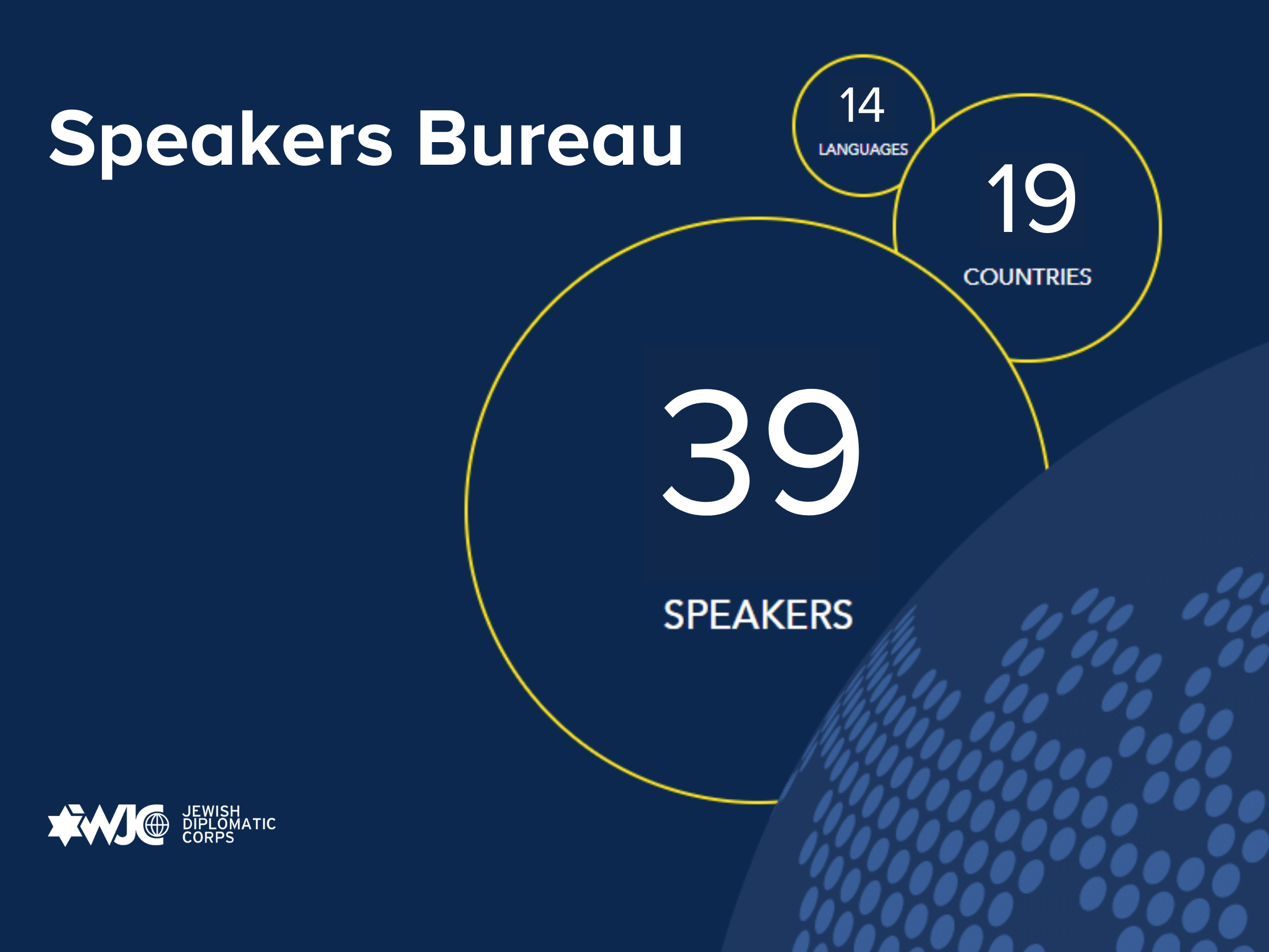 WJC Jewish Diplomatic Corps Speakers' Bureau providing you with access to our foremost public speakers. This global network is filled with outstanding public speakers from multiple regions and can speak in various languages on our core topics such as combating antisemitism, Israel engagement, and diaspora Jewry, Holocaust legacy, Jewish community life, interfaith relations, and more.