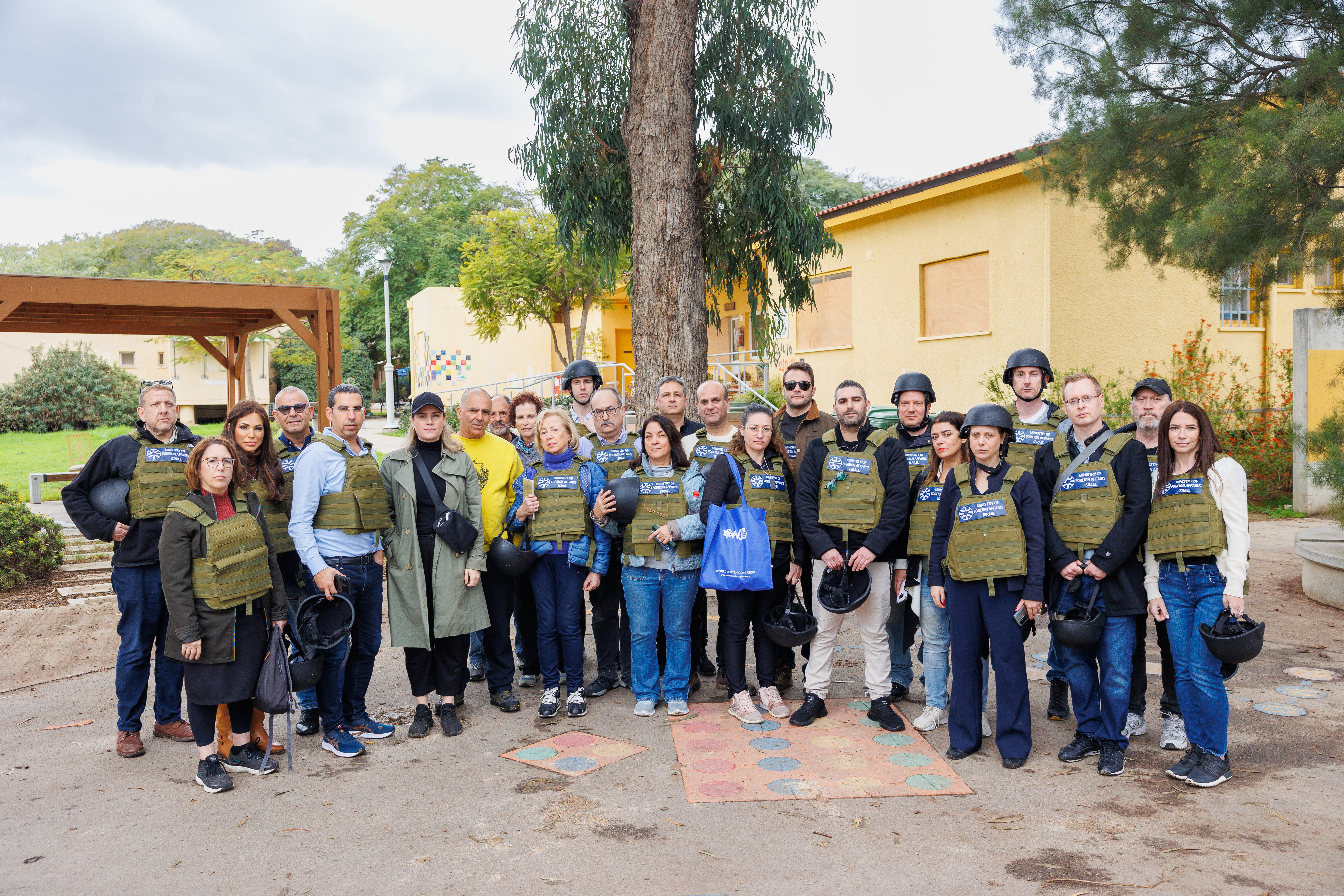 World Jewish Congress-Israel led a delegation to Kibbutz Kfar Aza and Sderot to express unwavering support for Israel and to bear witness to the devastation and atrocities caused by Hamas terrorists on Shabbat Simchat Torah, October 7th, 2023. The delegation included members of its board, the WJC Jewish Diplomatic Corps, the Israel Council on Foreign Relations board, and representatives of other NGOs.
