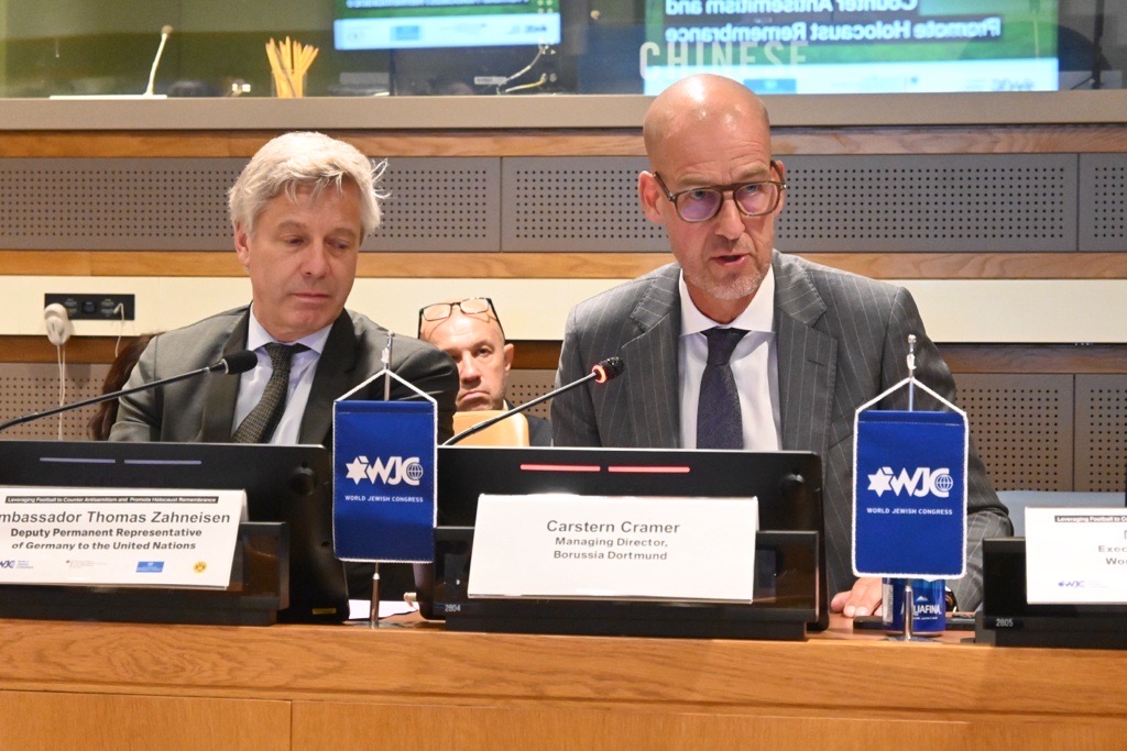 The Monday event, “Leveraging Football to Counter Antisemitism and Promote Holocaust Remembrance,” was co-sponsored by the World Jewish Congress, the Permanent Mission of the Federal Republic of Germany to the UN, and the UN Office on Genocide Prevention and the Responsibility to Protect, in collaboration with Borussia Dortmund (BVB).