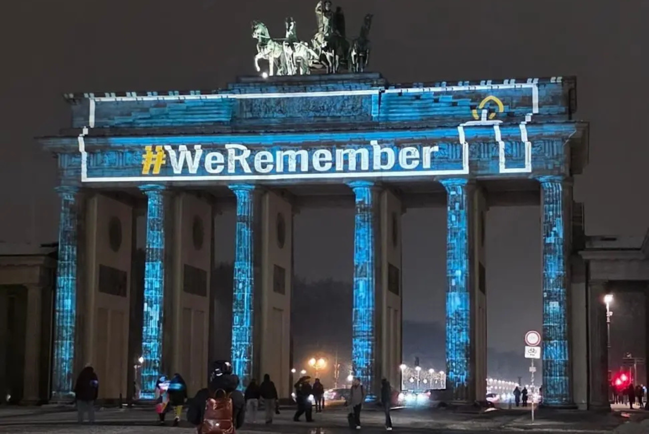 Throughout the night, prominent sites served as beacons of memory and solidarity with Holocaust victims and survivors. Among the landmarks illuminated worldwide were Germany’s Reichstag building and Brandenburg Gate. In Israel, sites included the Azrieli Towers in Tel Aviv, the Knesset, Ben Gurion Airport’s control tower, Teddy Stadium, and the Ministry of Foreign Affairs in Jerusalem. Additional landmarks across Europe and beyond — including in the Czech Republic, Portugal, Moldova, Greece, Estonia, Brussels, Geneva, Canada, New York, and other cities — also participated in the global initiative.